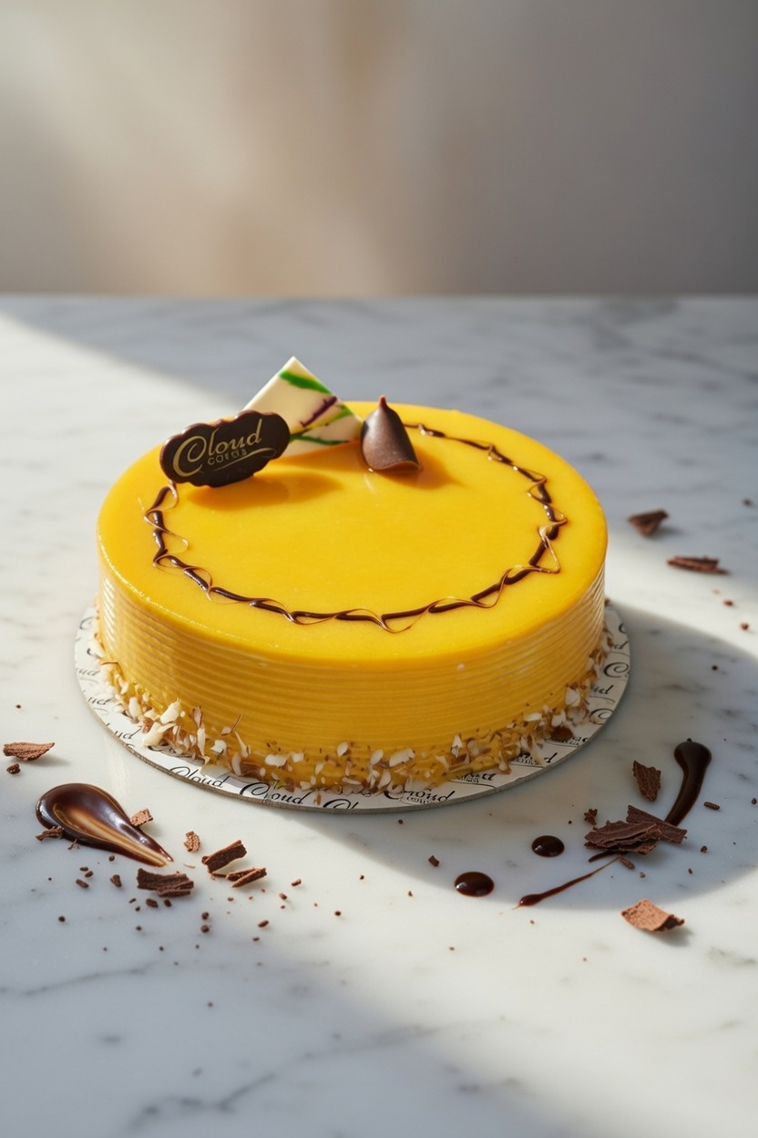 Soft vanilla cake layered with fresh mango-flavored cream, offering a sweet and refreshing tropical flavor.
