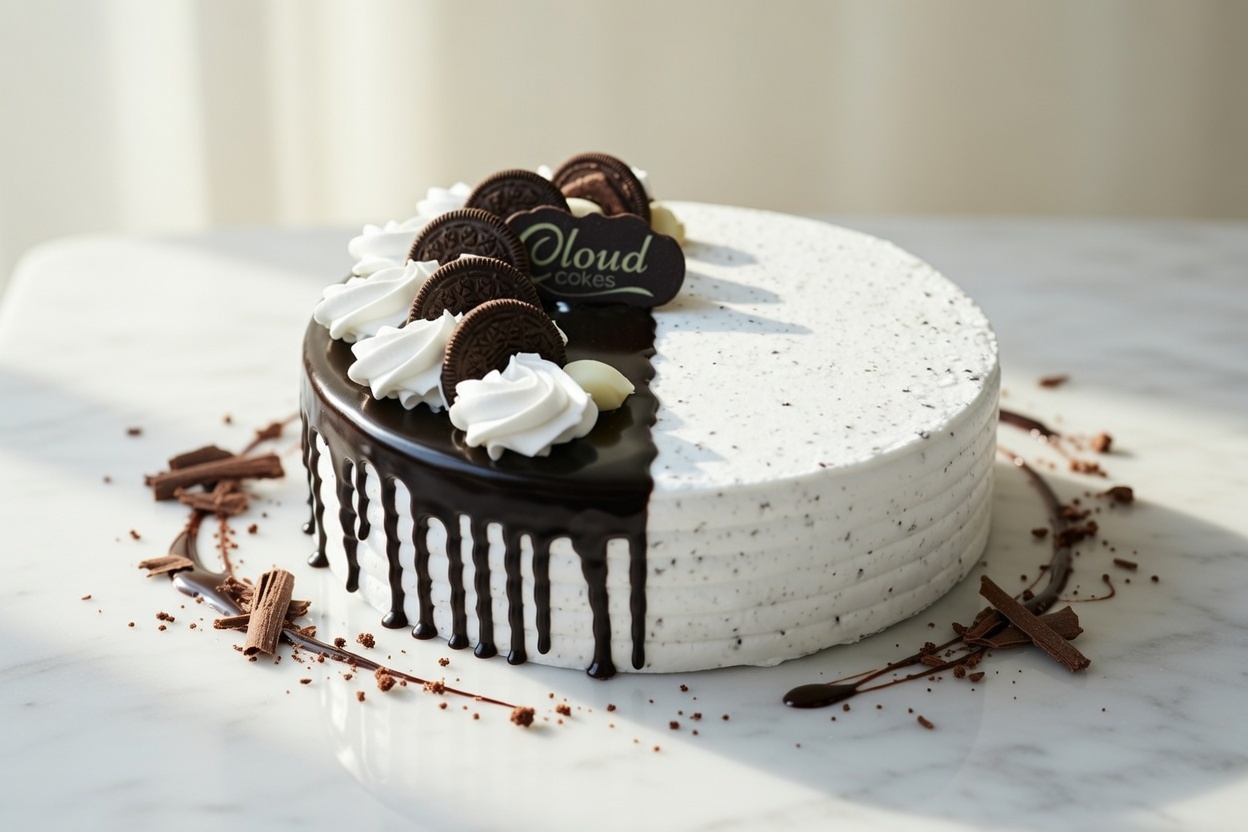 Delicious chocolate cake layered with creamy frosting and crushed Oreo biscuits, offering a delightful cookies-and-cream experience.