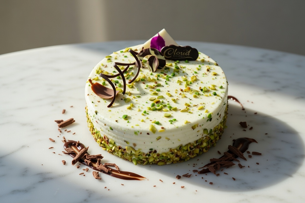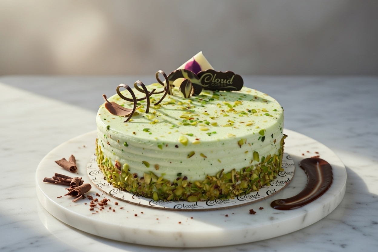 Light vanilla sponge combined with pista flavor and creamy frosting for a rich nutty taste.