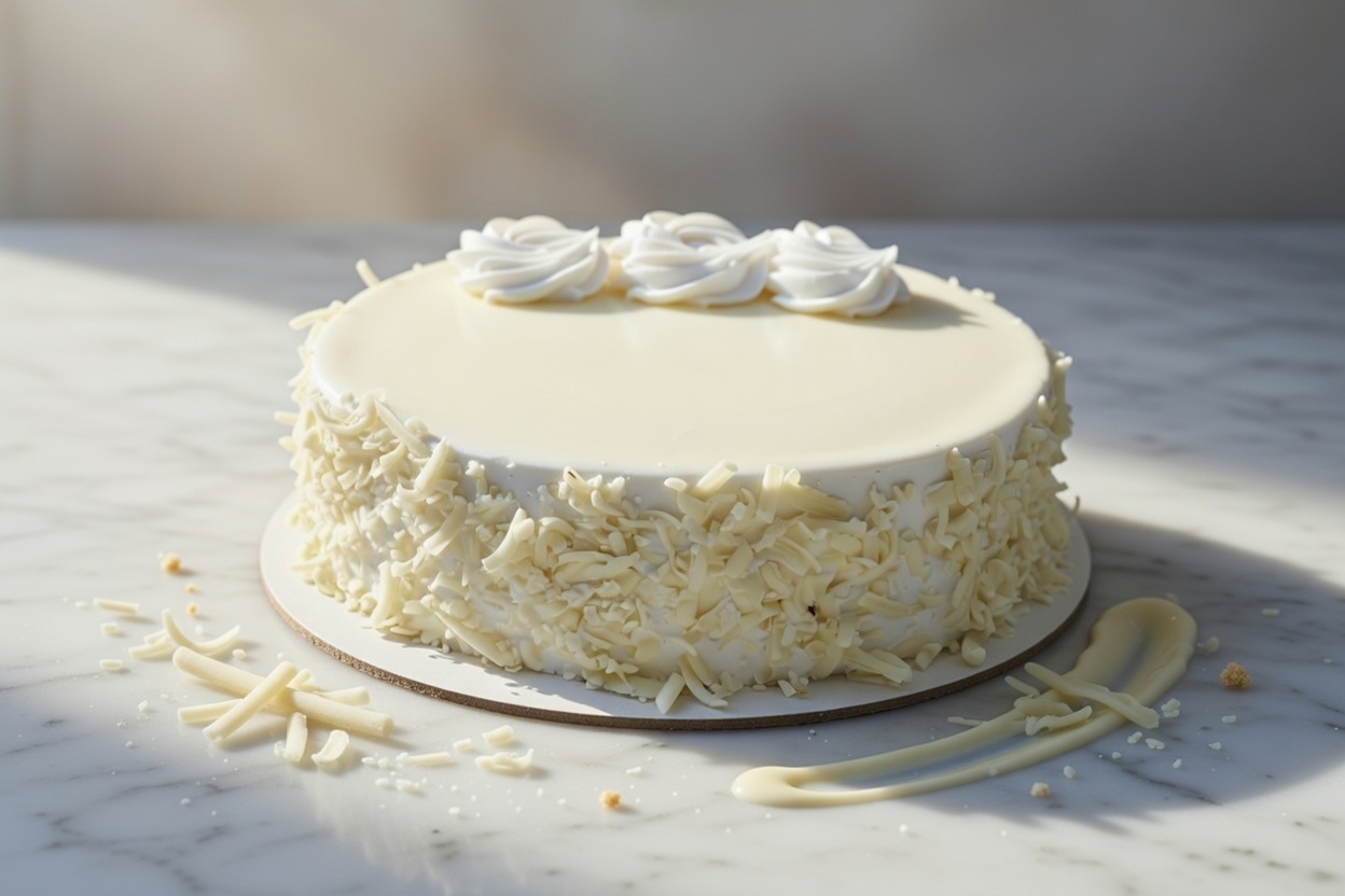 Soft vanilla sponge layered with whipped cream and chocolate flakes for a light and delicious dessert.